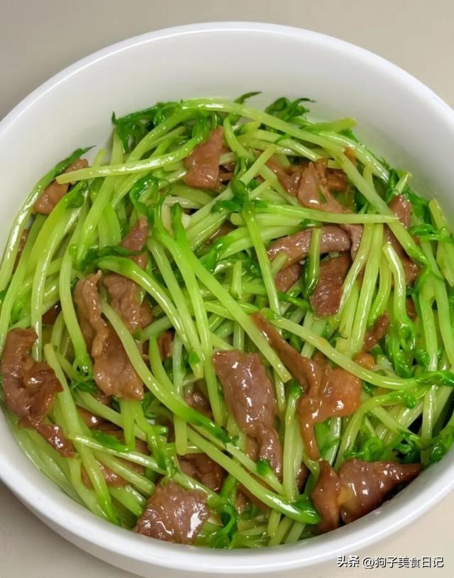 1.豌豆苗炒肉